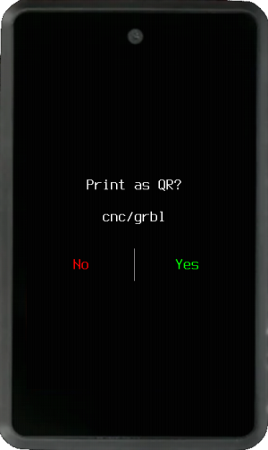 After configuring the CNC printer and driver in settings, any screen that displays a QR code will offer to Print as QR. Use this to Carve QR codes into wood/metal, like backups of your mnemonics, xpubs and multisig wallet output descriptor.