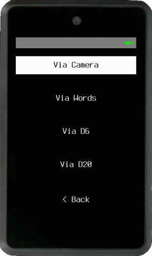 At the start screen, select New Mnemonic, and choose between camera, words, rolls of a D6 (standard six-sided die), or a D20 (20-sided die).