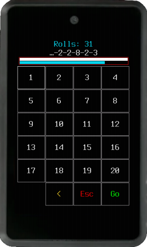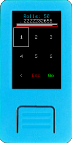 For dice rolls, Krux keeps track of every roll you enter and displays the cumulative string of outcomes after each roll.
