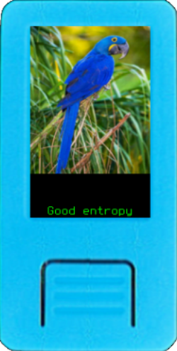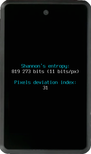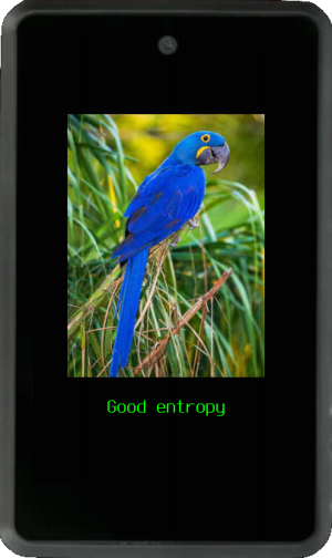 During image capture, entropy quality estimation is displayed to assist you in obtaining a quality image source for your key. After the snapshot is taken, Shannon's entropy and pixel deviation indices are presented. Minimum thresholds are established to prevent the use of poor-quality images with low entropy for key generation.