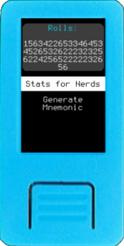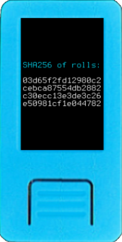 When you have entered your final roll, Krux will hash this string using SHA256 and output the resulting hash to the screen so that you can verify it for yourself.