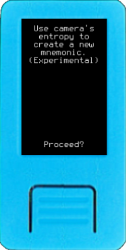(Experimental!) Choose between 12, 24 words or double mnemonic, then take a random picture and Krux will generate a mnemonic from the hash of the image bytes.
