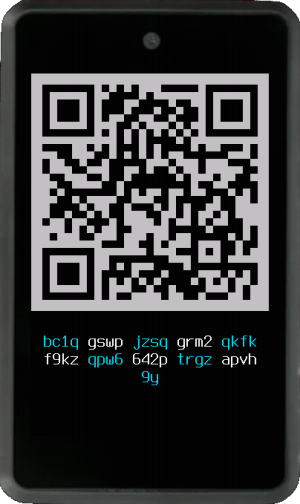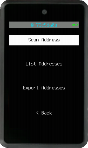 This option turns on the camera and allows you to scan in a QR code of an address. Upon scanning, it will render its QR code back to the display along with the address below.