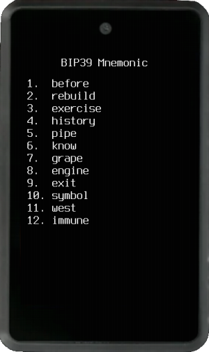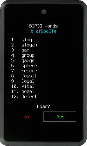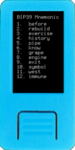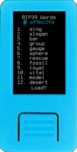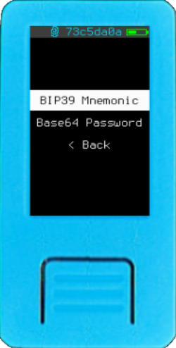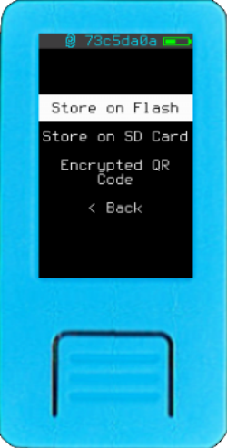 If an SD card is available, this option stores the encrypted mnemonic on it. You can decrypt and load it later through the Load Mnemonic -> From Storage.