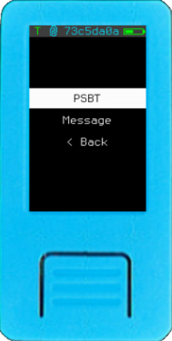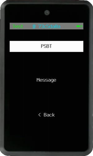 Here you can choose to sign a PSBT or a Message. You can load both by scanning QR codes or selecting a file from an SD card.