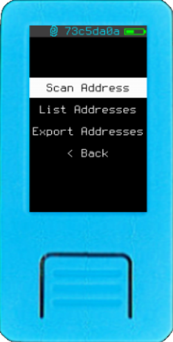 Export your wallet receiving or change addresses starting from a selected index and quantity to a CSV file on your SD card.