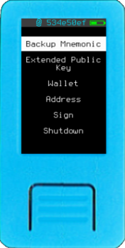After entering your mnemonic, and loading a wallet, you will find yourself on Krux's main menu. Below is a breakdown of the entries available: